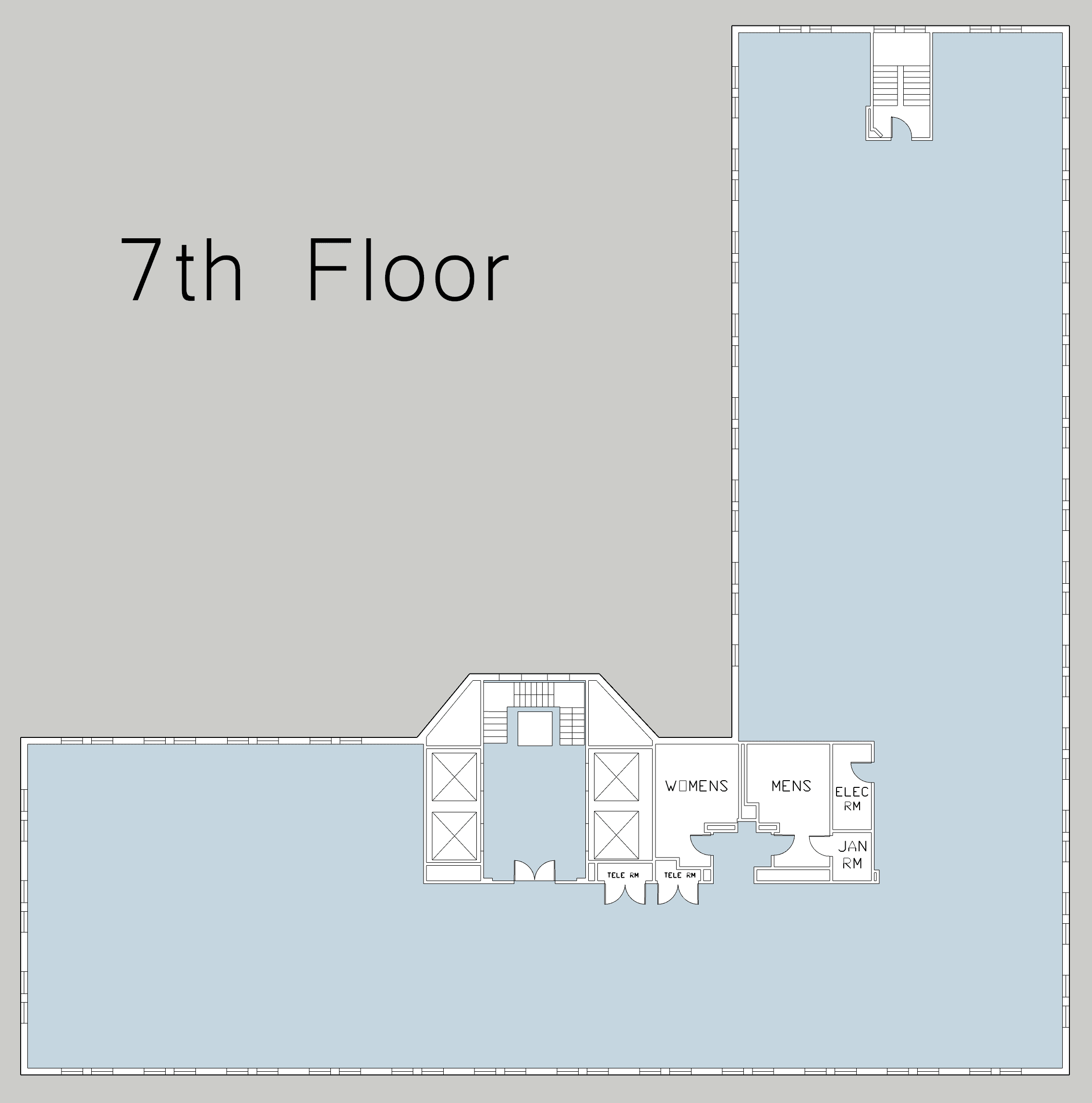 Welcome to the 7th floor of the Standard Oil Building, a vast expanse of possibilities that stretches across its entire 12,000 square footage. This floor stands as an unparalleled canvas of creative potential, uniquely devoid of office room spaces. Instead, you’ll find an expansive open space, a blank slate ready to be transformed to fit your creative needs.